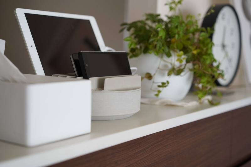 今や生活に欠かせない存在となった、スマートフォンやタブレットなどのデジタル端末。意外に困るのがその置き場所です。ケーブルがごちゃごちゃと見苦しいので、できることなら目立たないところに隠しておきたいところですが、そうすると今度は使いたいときにすぐ取り出せず不便だったりするわけです。